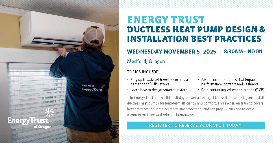 Medford, OR – Energy Trust Ductless Heat Pump Design and Installation Best Practices